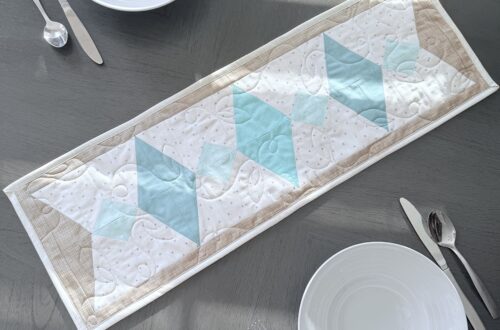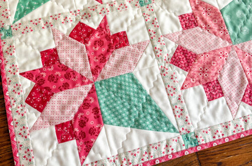Make this Fun Spring Table Topper using Berry & Sage and the New Accuquilt Nosegay Die