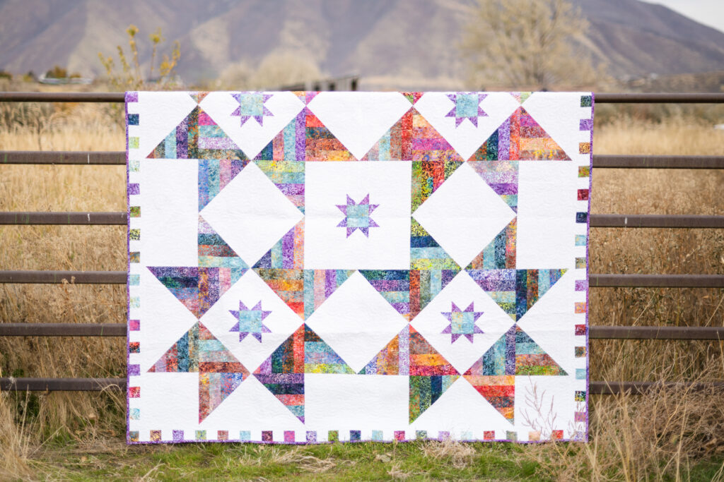 The Twirling Stars Quilt by Pastry Shop Quilts is rolie polie friendly. Twirl your blocks around the quilt to create this star-studded beauty. Strip quilting for ease & fun! Finished size is 81″ x 81″. Visit Pastry Shop Quilts’ website below to get the pattern!