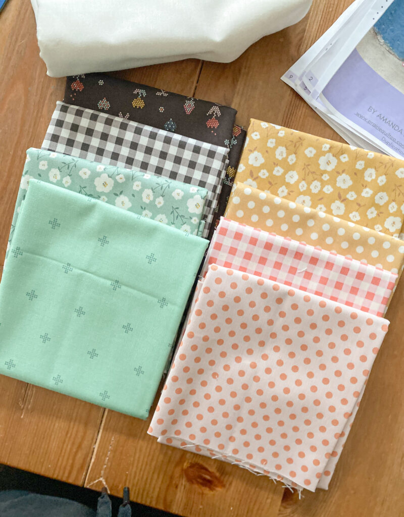 Hi there, It’s Lesley from Piece and Quilted Studio, and I’m back with another beauty of a quilty make! I had the pleasure of sewing with the newest line from Minki Kim called Sunsetridge and what a treat it was! The collection is full of gorgeous florals, classic plaids and some very cute pixelated designs, all brought together with fresh contemporary hues!