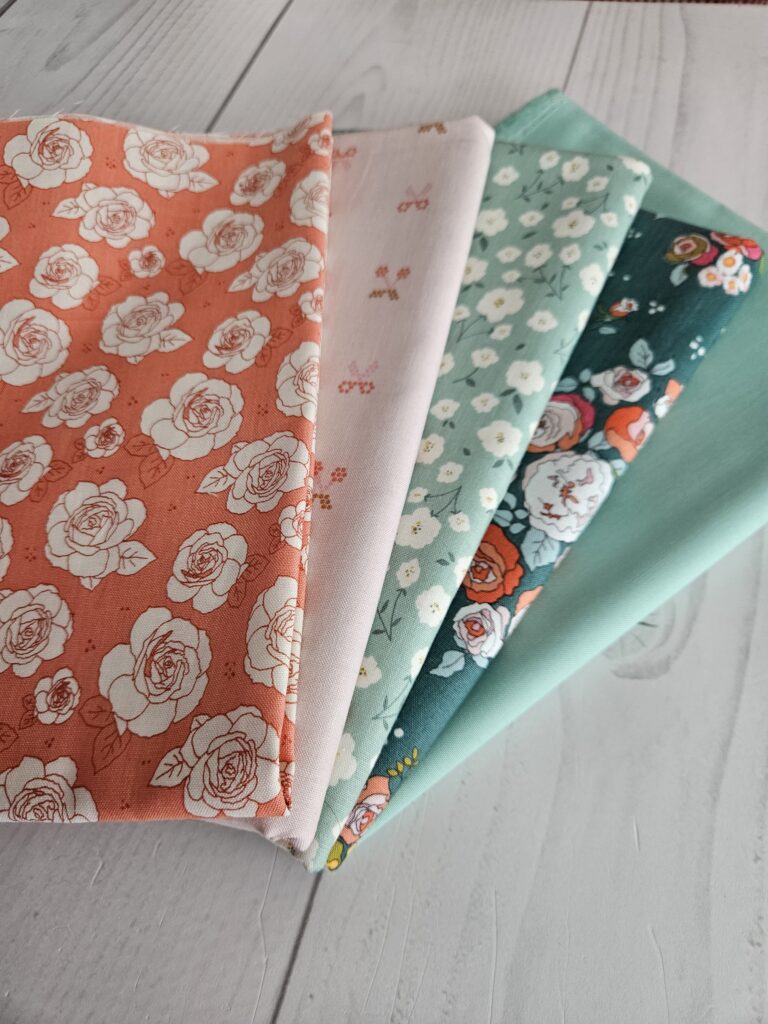 This week I had the pleasure of creating a patchwork bag with the brand new collection from Minki Kim called Sunsetridge. The collection features soft mint and blush tones with a pop of coral.
