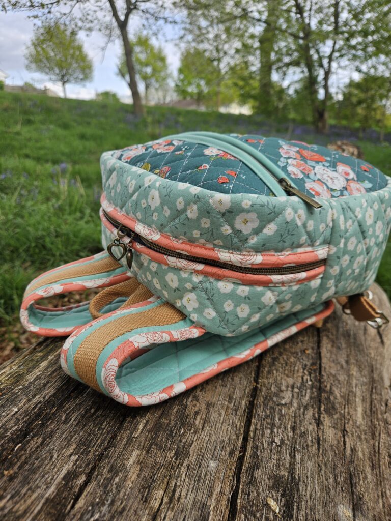 I selected my four favourite prints and a co-ordinating confetti cotton fabric to create a quilted backpack. The pattern that I have used is the Acorn Bag by Adam Sews which can be found here. I thought that the front panel of the bag was the perfect place to showcase one of the large floral prints.