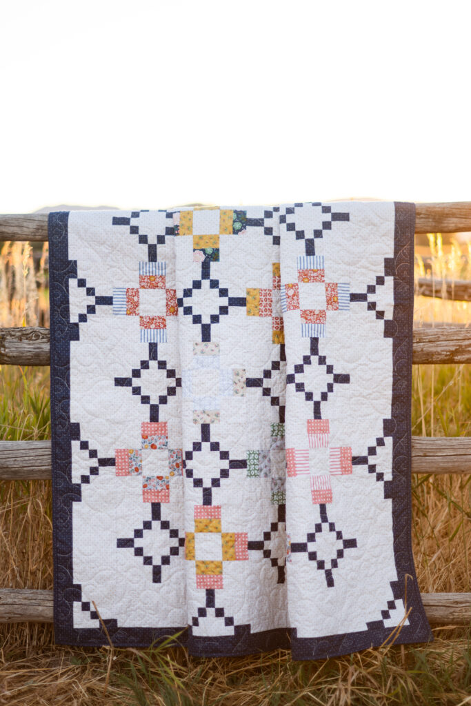 Ivy Reese fabrics and patterns are arriving at your favorite local and online quilt shops this month! You can also download the FREE In Full Bloom Quilt Pattern below.