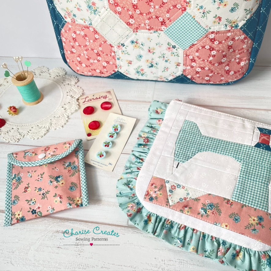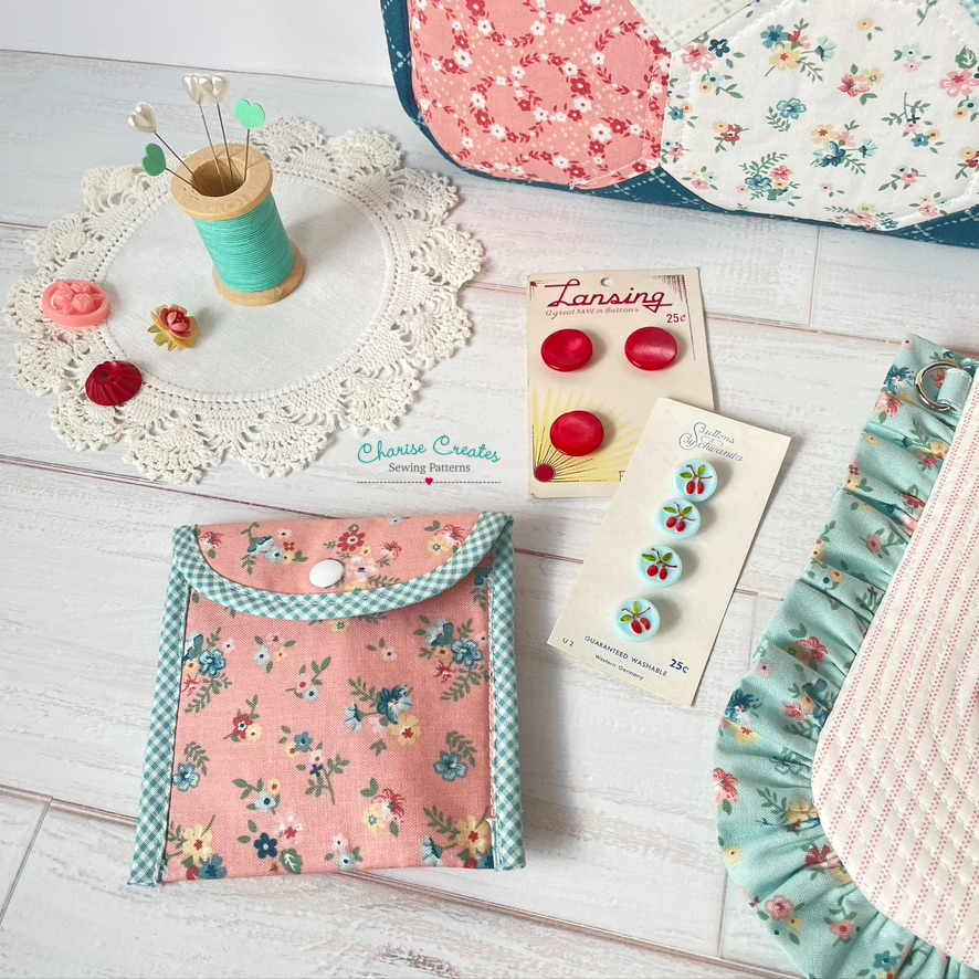 The opposite side of the pouch features my Vintage Sewing Machine Pattern. My Featherweight circa 1964 is the inspiration for this pattern.
