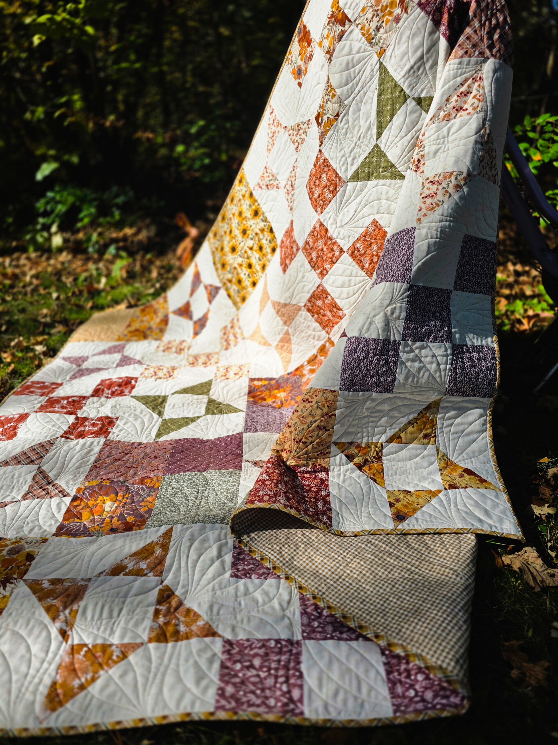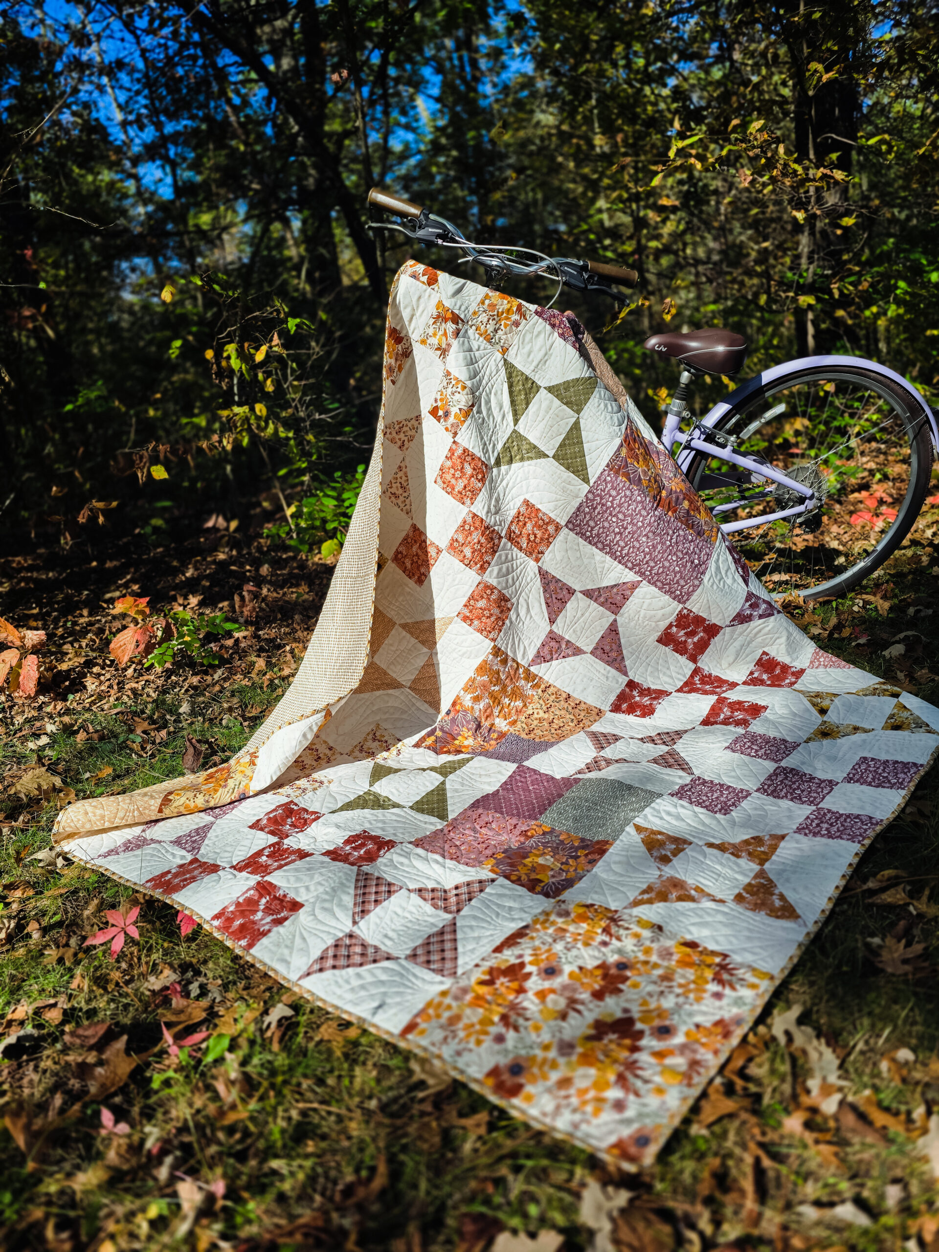 As the days get shorter and the air turns crisp, I hope this quilt inspires you to pull out your favorite fabrics and sew something that feels like home. Whether you use scraps from your stash or start fresh with a pretty bundle, there’s just something special about wrapping up in a quilt that captures the feeling of the season.