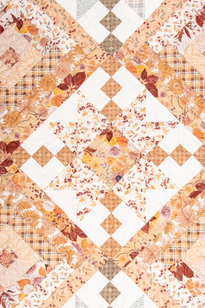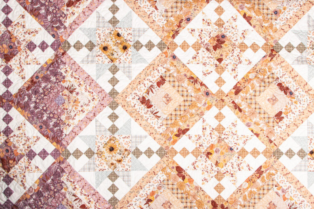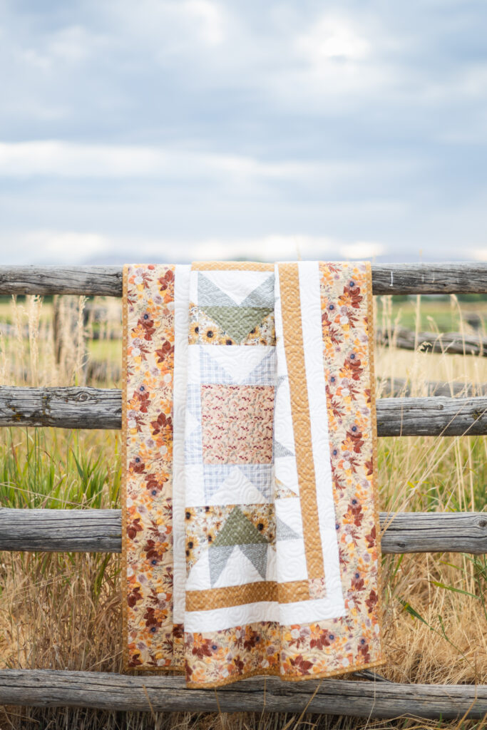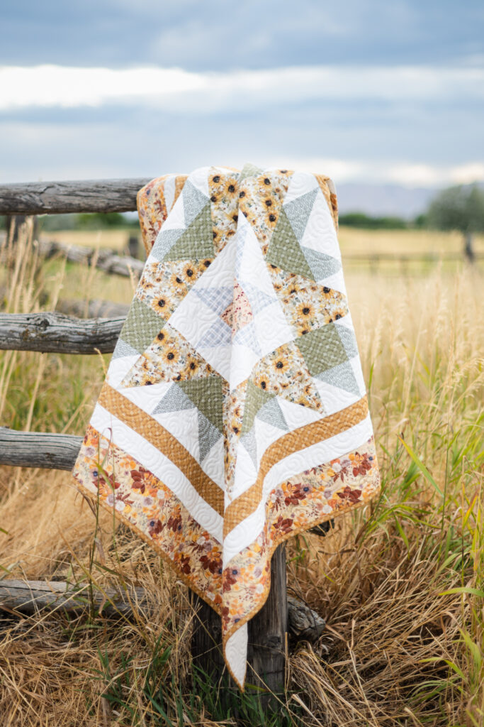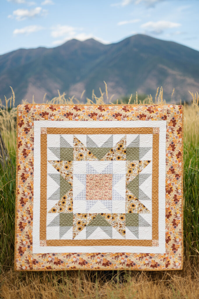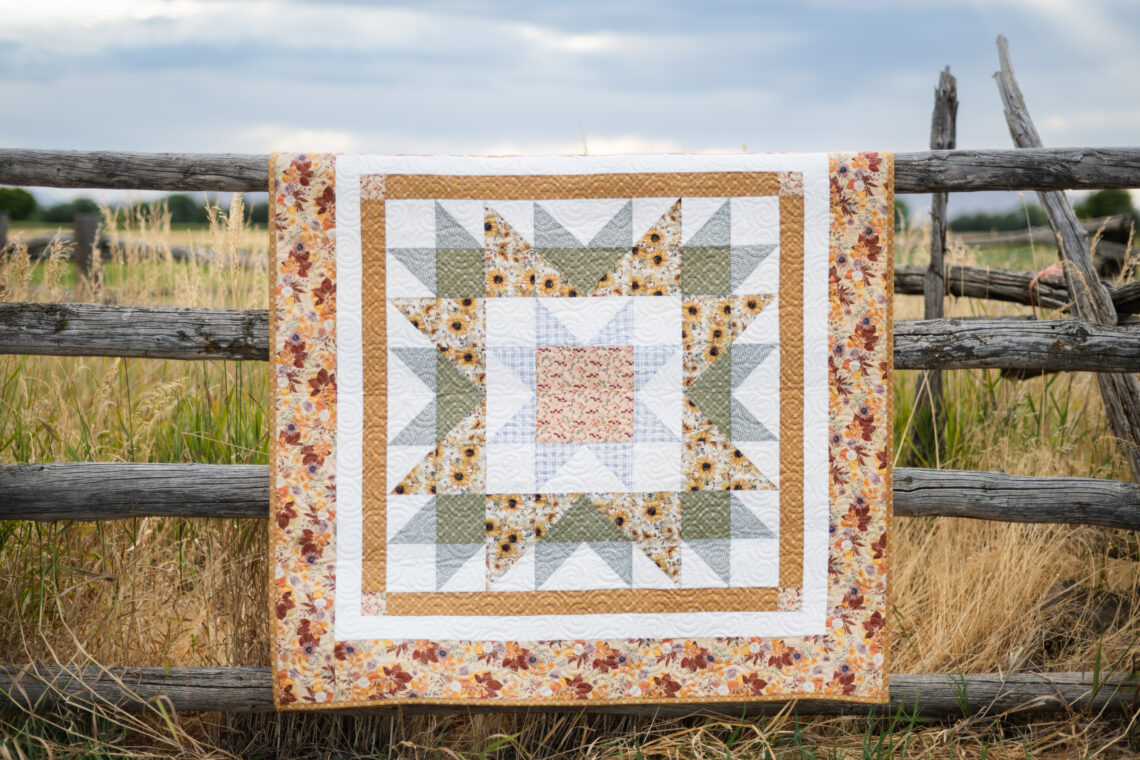 Capture the essence of autumn’s embrace in your home decor with the Evening Star Table Topper! This project is made with Evening on the Prairie fabrics, which are inspired by the serene beauty of the fall season, offering a palette of deep, earthy tones and intricate patterns that evoke the spirit of the harvest. Download the FREE pattern by The RBD Designers below!