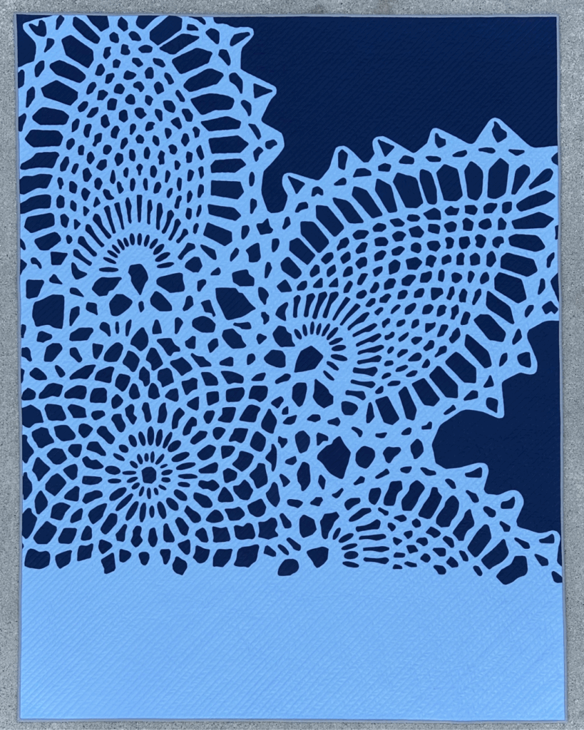 For my quilt, I used the Riley Navy and Periwinkle Confetti Cottons™️ and I love how they complement each other! I wanted the background to be something the viewer had to think about- is it the dark navy or the light blue that the doily evolves out of? Periwinkle may be my favorite Riley Blake color, so I wanted to use as much of it as I could.