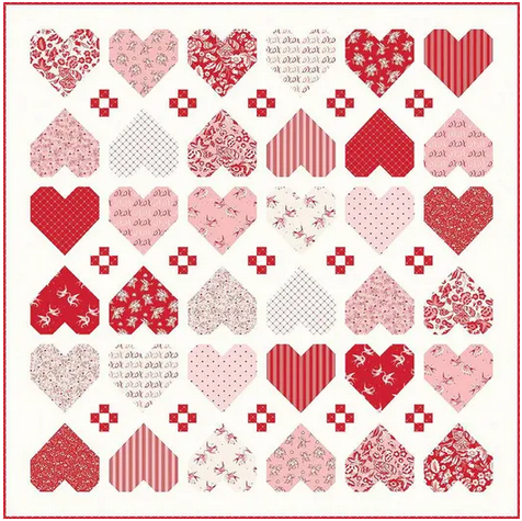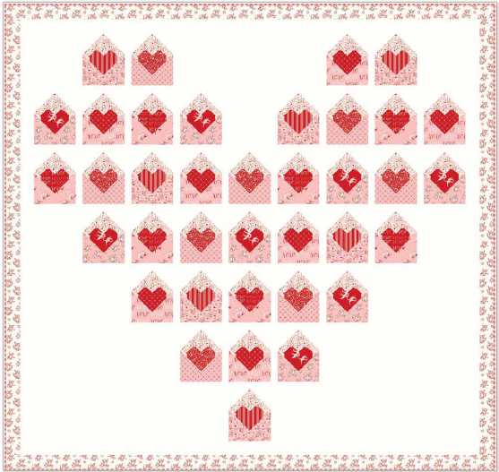 Letters to Cupid by My Mind’s Eye is a love letter in fabric, wrapped in a romantic palette of cream, red, and pink!