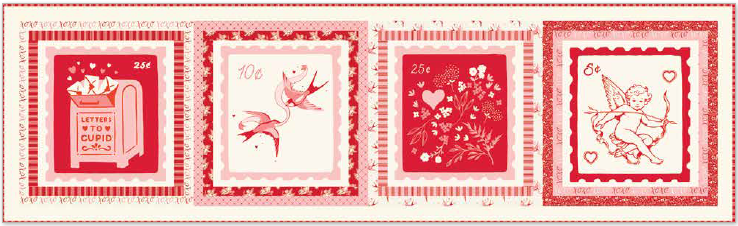 Start planning the projects you’ll make for your valentine when Letters to Cupid arrives in shops and online this month! The FREE Letters to Cupid Panel Runner Pattern by The RBD Designers will soon be available for download here on the blog!