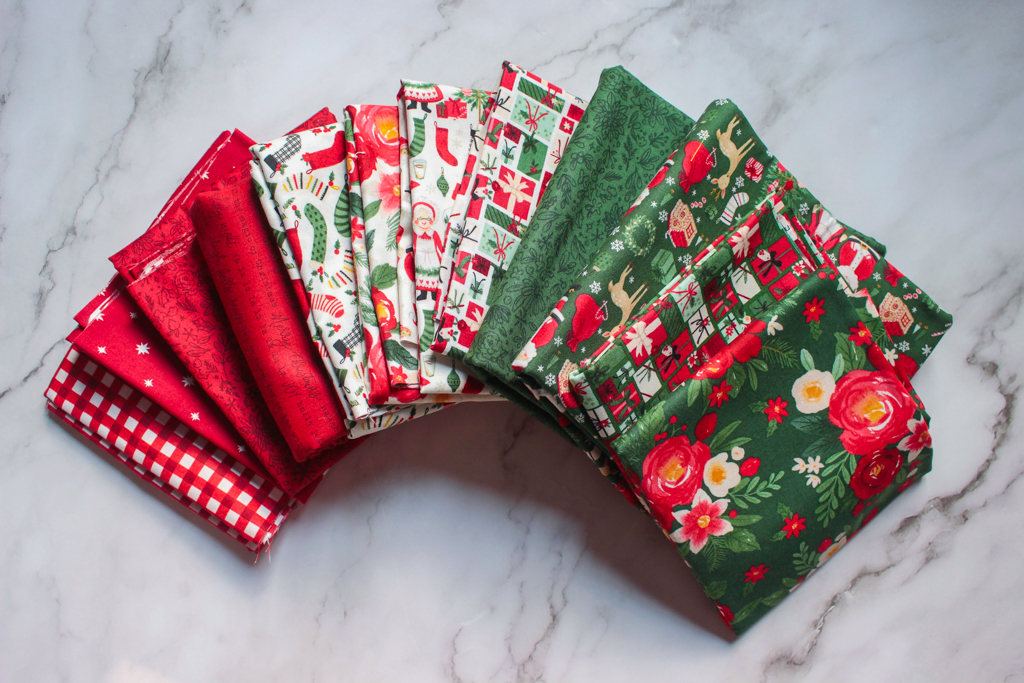 Hello fellow makers, this is Luci from Sea Garden Sewing writing with my latest quilty make! I may normally be a procrastinator, but something about Christmas projects has me up and running ahead of time, even months early. I had the pleasure of working with Charming Christmas by Kelsey Carlson. Filled with festive words, beautiful florals, and Mr. and Mrs. Claus, this line has everything that screams Holiday cheer.