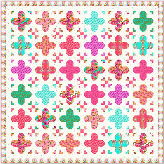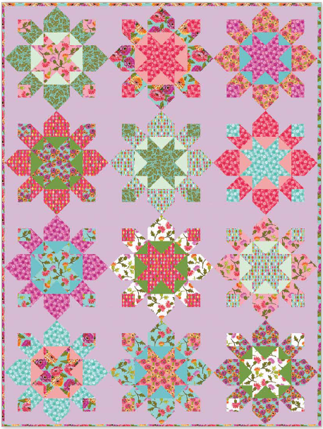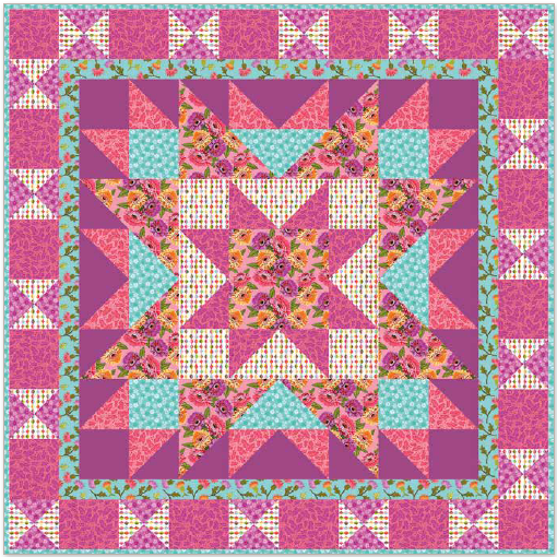 You can bring the vibrant colors of the Zinnias collection home as fabrics and patterns arrive in shops this month! The Dodi’s Star Quilt is a FREE pattern available below.
