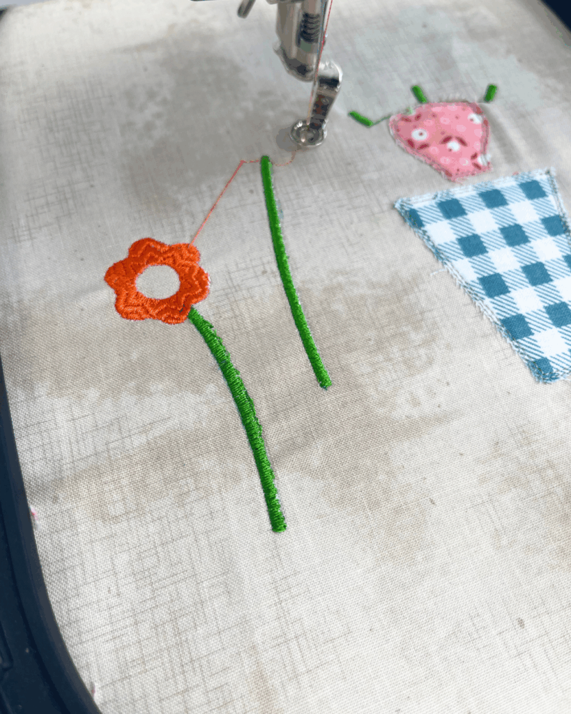 This block uses Heavy Weight Tear-Away Stabilizer to support the dense stitching in the basket weave and background fills.