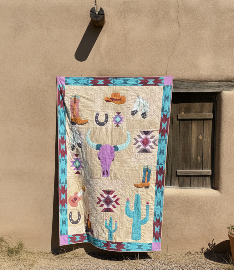 This quilt has truly been a creative adventure for me, one that began with a bit of TV inspiration and turned into a fabric journey through the dusty trails and sunlit skies of the Southwest.