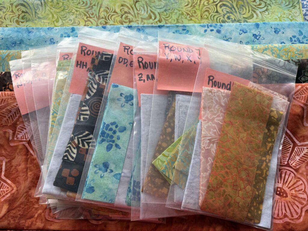 Even though the design looks complex, the quilt pieces themselves are actually very basic — all strips cut at 1½” and 2½” wide. The trick is in the organization. I found that sorting each “round” of fabrics and bagging them separately made a huge difference in keeping everything straight as I sewed.
