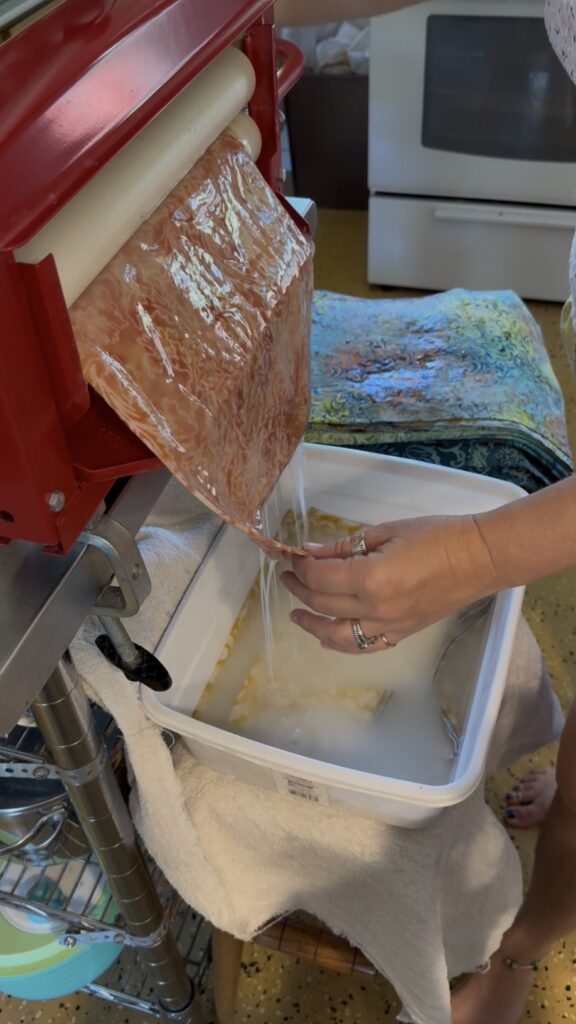 Before cutting, I always take the time to pre-wash and starch my fabrics. I wash them on hot, dry on hot, and then use a liquid starch soak (a 50/50 mix of starch and water). I soak the fabric, run it through my hand-crank Calliger wringer to remove the excess liquid, and hang it to dry. After a good press, the fabric is crisp, firm, and an absolute dream to work with. It makes cutting and piecing so much more precise.