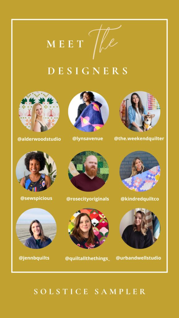 @rosecityoriginals, @alderwoodstudio, @quiltallthethings_, @kindredquiltco, @sewspicious, @the.weekendquilter, @jennbquilts, @urbandwellstudio, and @lynsavenue.