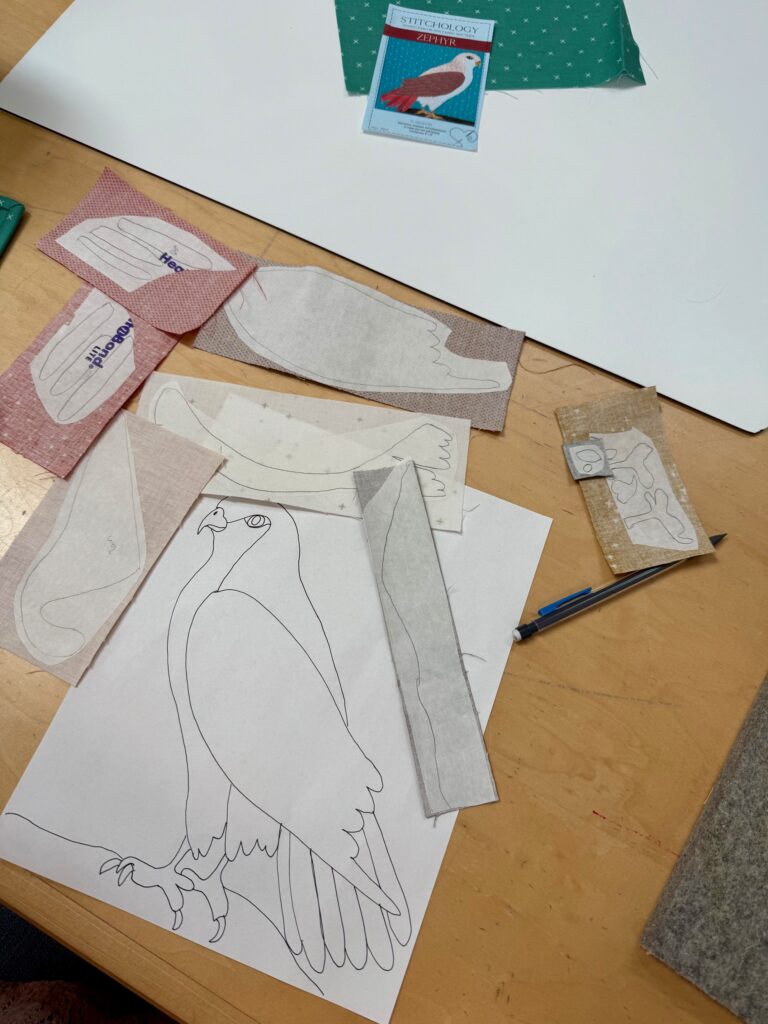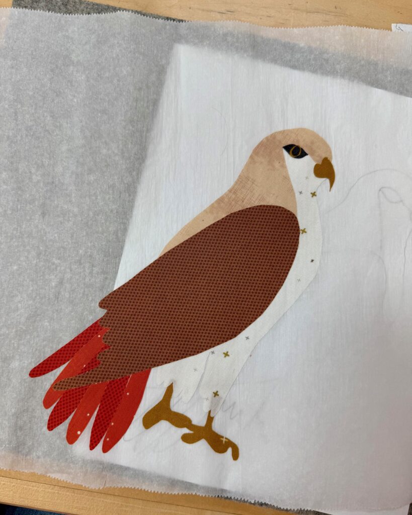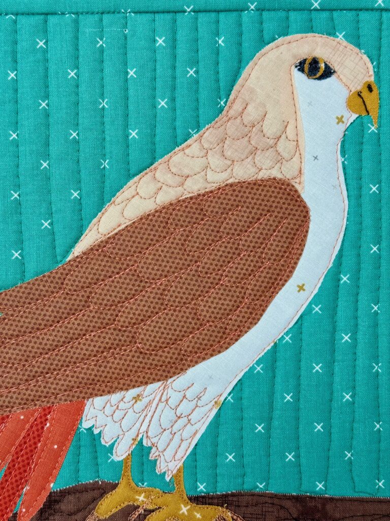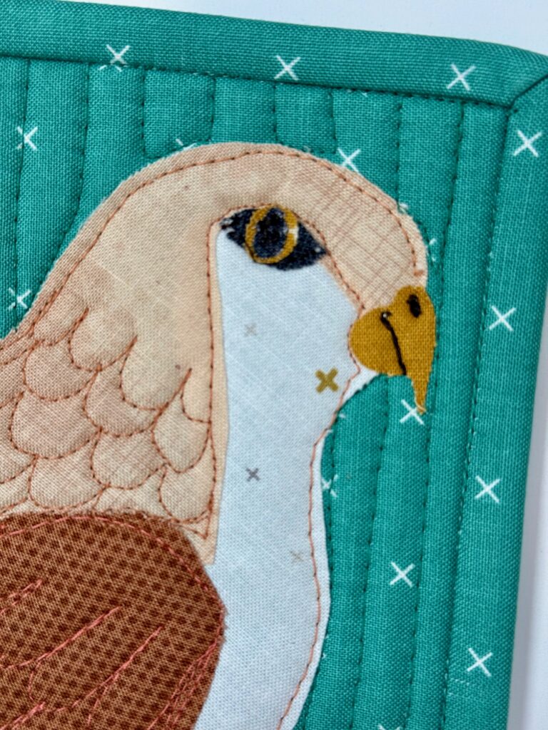 Next, I used the technique on free motion sewing found in this post to stitch in her talons and beak details.