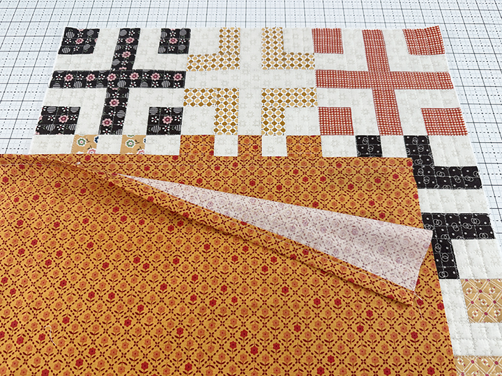 Note – if you add dense quilting, your top may shrink a bit in size. Just trim it to the largest square that you can. You can trim the width of envelope backing fabric a bit in the next step if needed in order to match your actual top size.