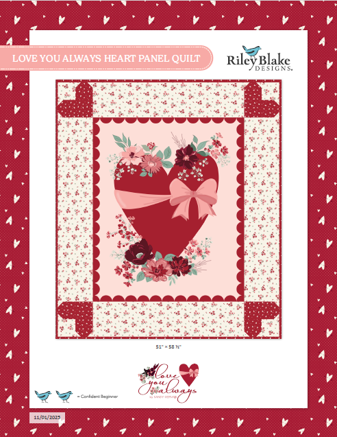 We can’t help but love the brand new Love You Always Heart Panel Quilt by Sandy Gervais of Pieces from My Heart! Featuring enchanting florals, plaids, hearts, plants, ditsy prints, and X’s & O’s, this quilt is the perfect expression of love and warmth!