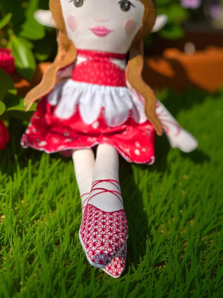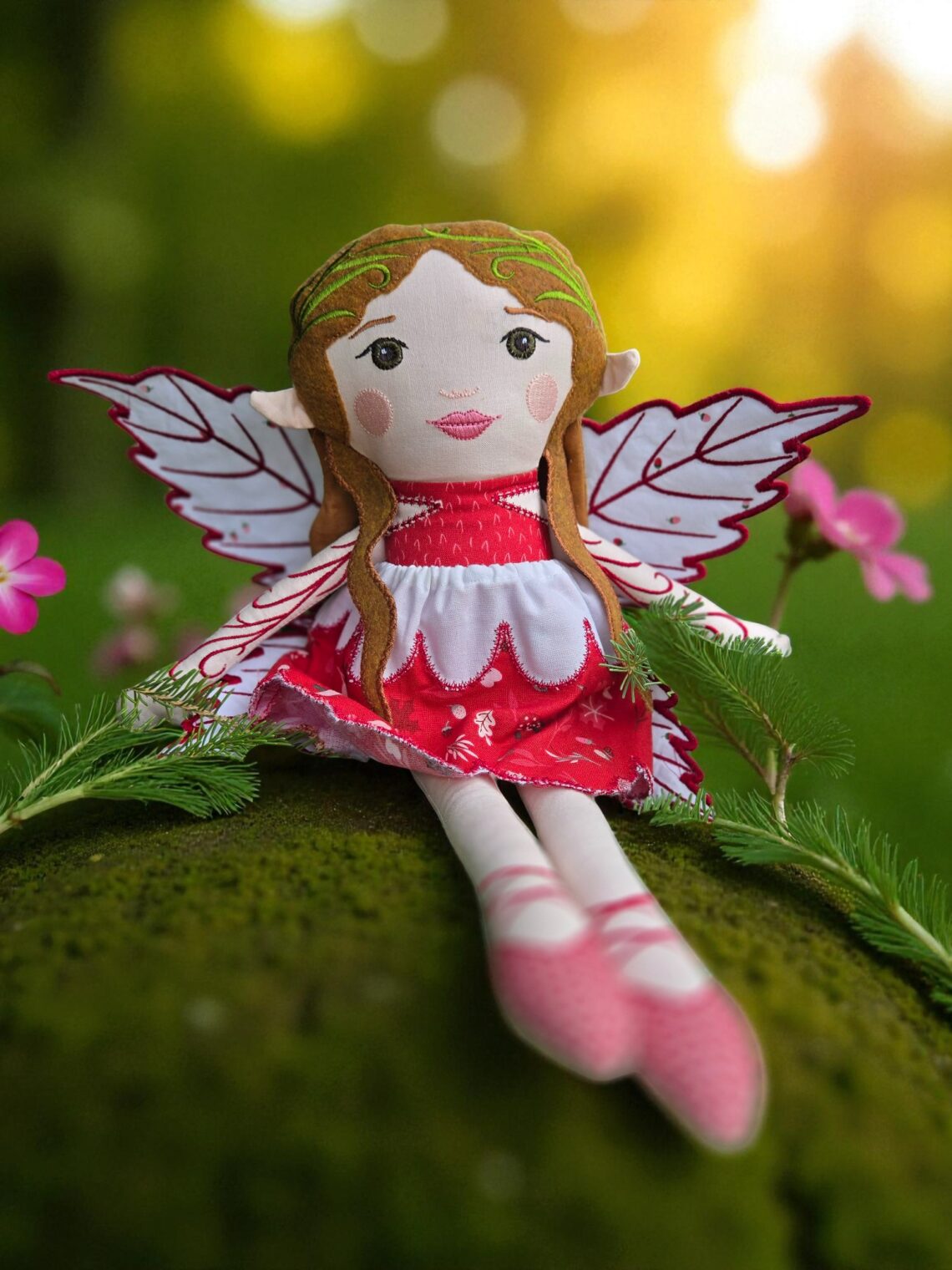 And for a bit of festive fun, I also created a mock-up of Thimbelina in Christmas colors. It was such a cheerful twist, and a great way to turn this doll into a sweet seasonal gift or decoration. The pattern works beautifully with winter tones, metallics, and even little embroidered snowflakes if you’d like to personalize her for the holidays.