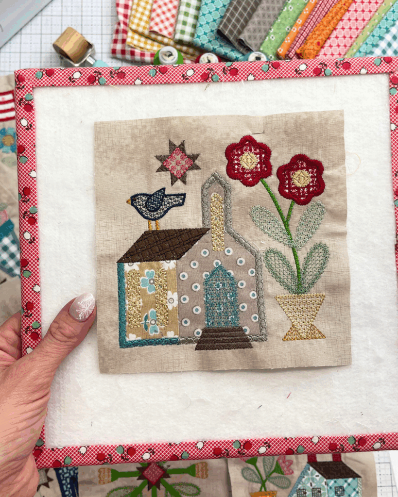 While many blocks rely primarily on appliqué for shape, the Church block leans heavily on threadwork to create texture and visual interest. This means your stitching choices, speed, tension, stabilizer, and fabric prep, make a noticeable difference in the outcome.
