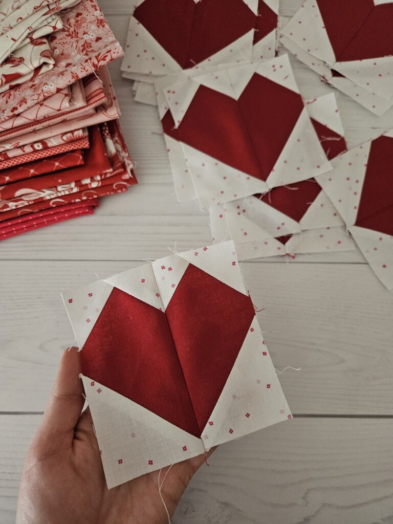 I am a huge fan of the combination of red and pinks together, not to mention fun low volume cream fabrics. I knew straight away that I wanted to make a quilt so I could be ready to use it in February once the fun and memories of Christmas had faded.