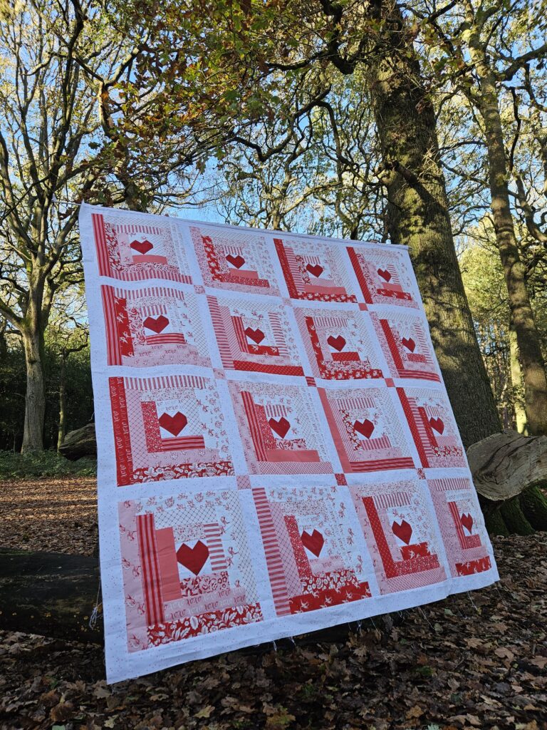 I am sharing my latest quilt project with you all, this month I had the pleasure of sewing with the brand new collection called Letters to Cupid. This collection is designed by My Minds Eye, and features classic designs of fluttering cupids, delicate florals, timeless stripes, and charming X’s & O’s.