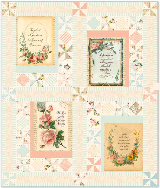 You can start collecting the flowers of Paris this month as Rose & Violet’s Bouquet des Fleurs fabrics and patterns arrive in shops and online! The Rose Garden Panel Quilt Pattern by The RBD Designers is available as a FREE download below.