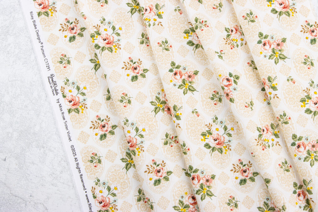 Rose & Violet’s Bouquet des Fleurs is a dreamy collection, like strolling through Le Marché aux Fleurs in Paris. Delicate and romantic, it features gorgeous florals complemented by stripes, lace, and dot prints. A soft palette of mint, cream, tan, blush, peach, and blue adds timeless elegance to your quilting and decor projects. Explore the entire collection in our storyboard below!