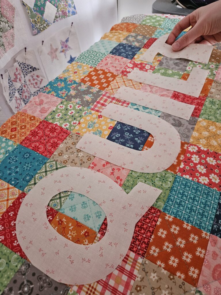 To create the applique lettering, I used a set of templates that were included in the Missouri Star Jenny’s Countdown to Christmas advent box. However other alphabet templates are available on the market or you can simply free hand you own lettering. I used fusible heat n bond on the back of the letter and then stitched around them using a blanket stitch. If you’d like to make something similar, a tutorial on this style of applique is available here.