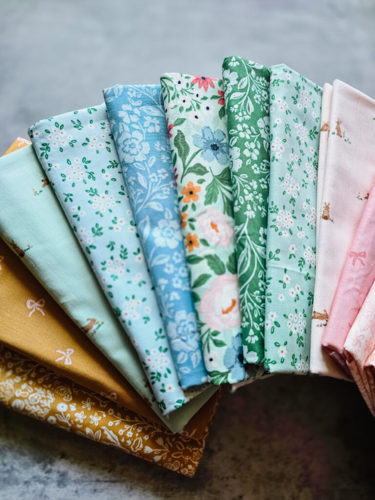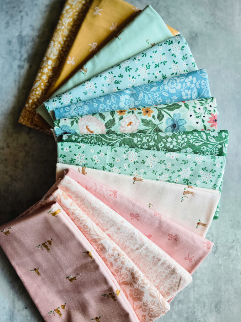 Sweet Cotton Tales is such a charming collection. The soft colors and darling prints bring a nostalgic touch that pairs beautifully with both blocks.Here is what I used: