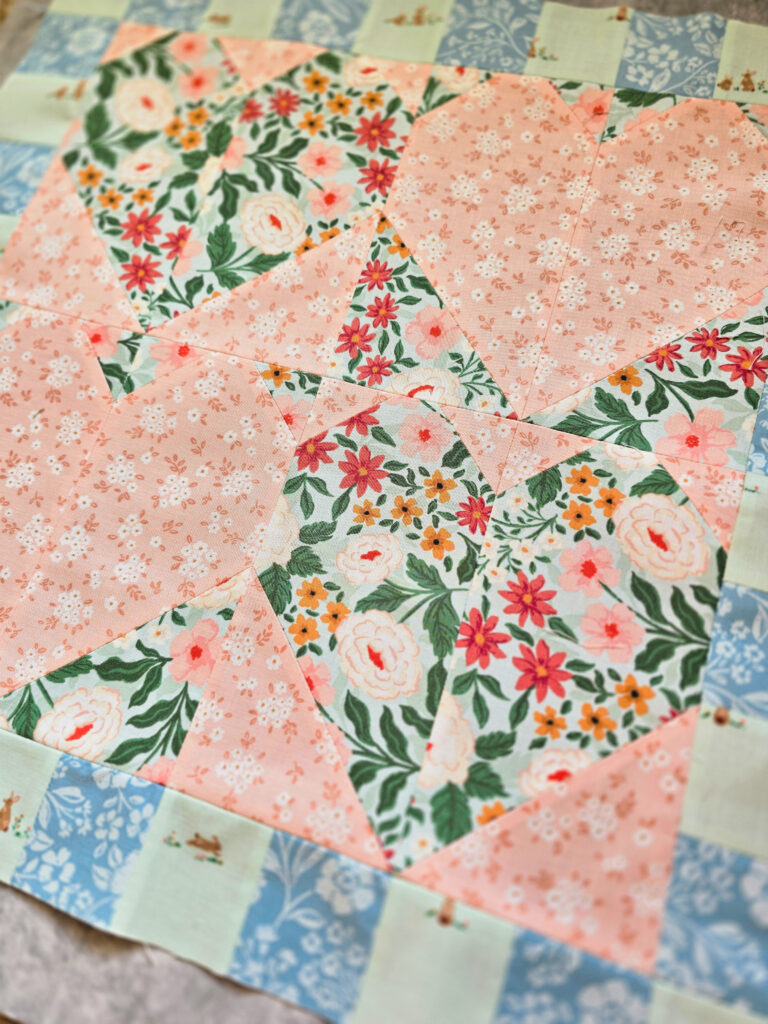I love quilts that let different blocks work together. The Mabel hearts add a sweet graphic touch and the Windflower blocks introduce gentle curves. Sweet Cotton Tales feels like the perfect bridge between both ideas. Every print feels ready to tell a story. When the blocks and fabrics come together, the quilt becomes tender, nostalgic, and modern all at once.