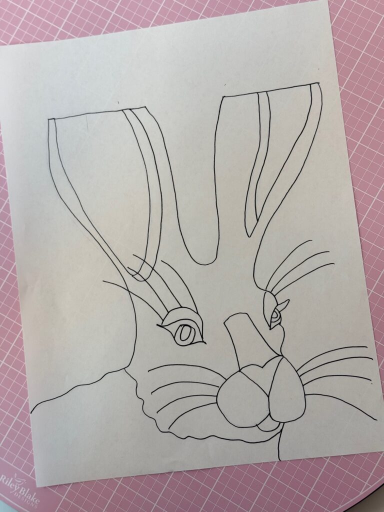 This block makes me cringe! Her face is wonky, her eye is loopy and it is not the cute bunny I had been imagining at all. I went back to my drawing and tried tweaking it, but nothing was right. I was ready to throw in the towel, declare defeat and decided I had lost my magic touch. Then I decided to change the perspective, and I drew her from the front instead of from the side as I originally planned.