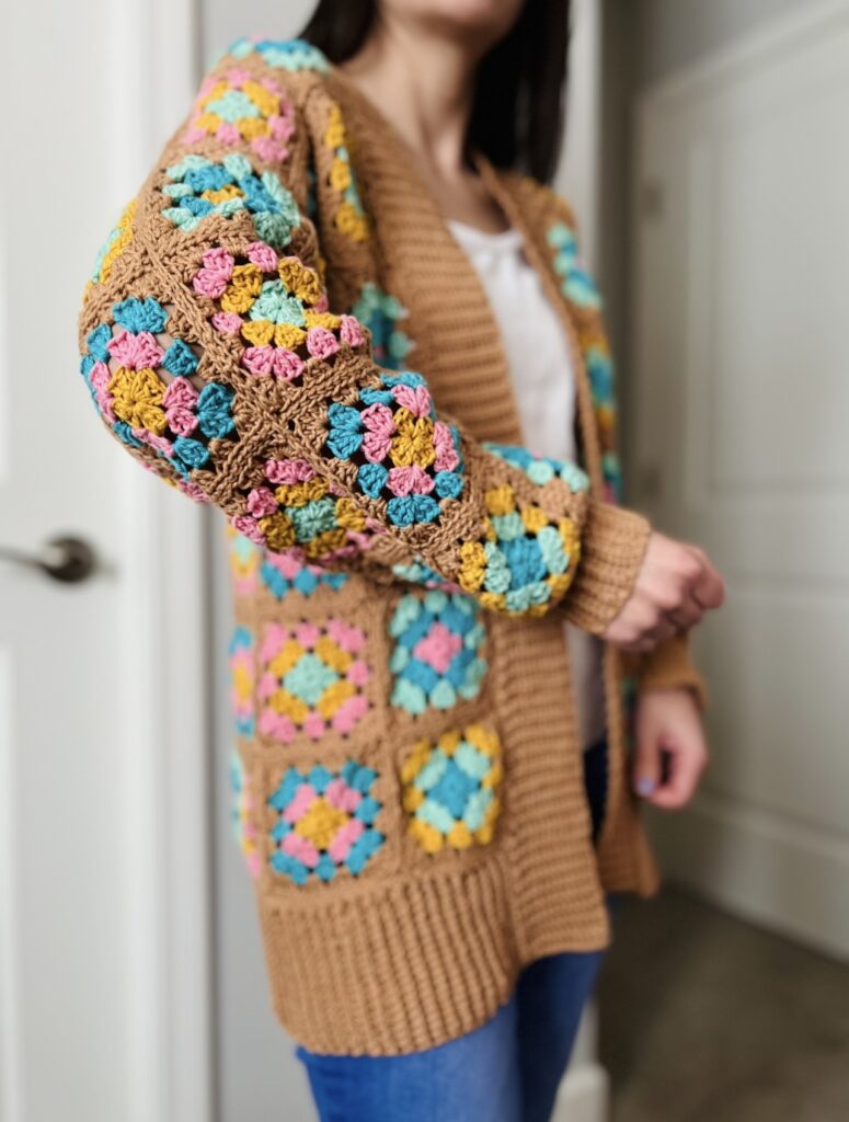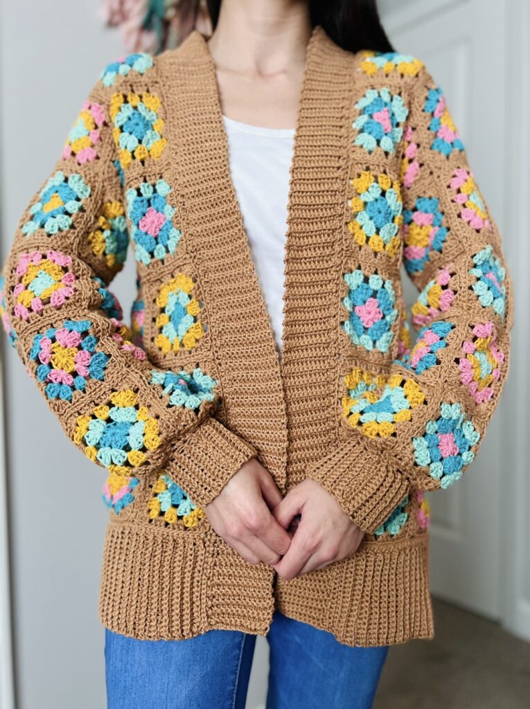 I have been a fan of Lori Holt’s fabric lines and I just knew that I would also love her yarn colors! I found that crocheting with cotton gives such a fabulous stitch definition in comparison to other materials I have crocheted with. It will be a very comfortable cardigan to wear in warmer temperatures as cotton is perfect for breathability.