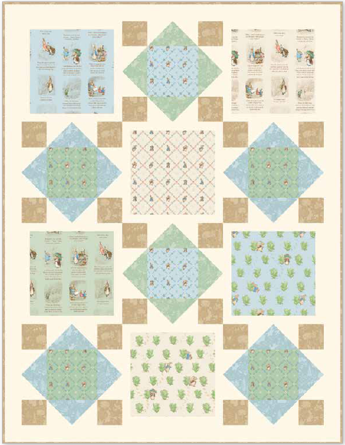 Journey along with Peter Rabbit™ and Benjamin Bunny™ as fabrics and patterns arrive in shops this month! You can also download the FREE Peter’s Garden Adventures Quilt pattern by The RBD Designers below.