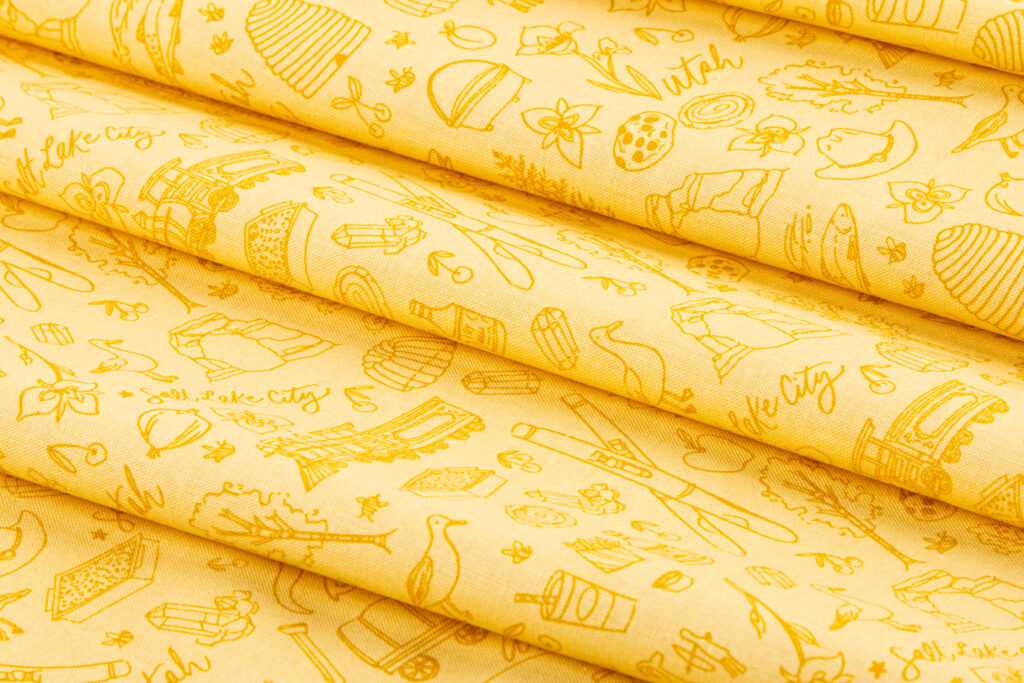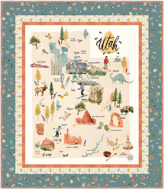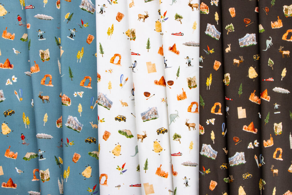 Featuring a rich palette of cream, blue, yellow, teal, orange, espresso, and gold, this collection includes Utah icons like the beehive, tonal patterns, stripes, and a standout panel highlighting must-see destinations and activities. Perfect for nature lovers, this collection captures the spirit of skiing, hiking, and exploring the beauty of Utah. You can see all of this beUTAHful collection on our storyboard!