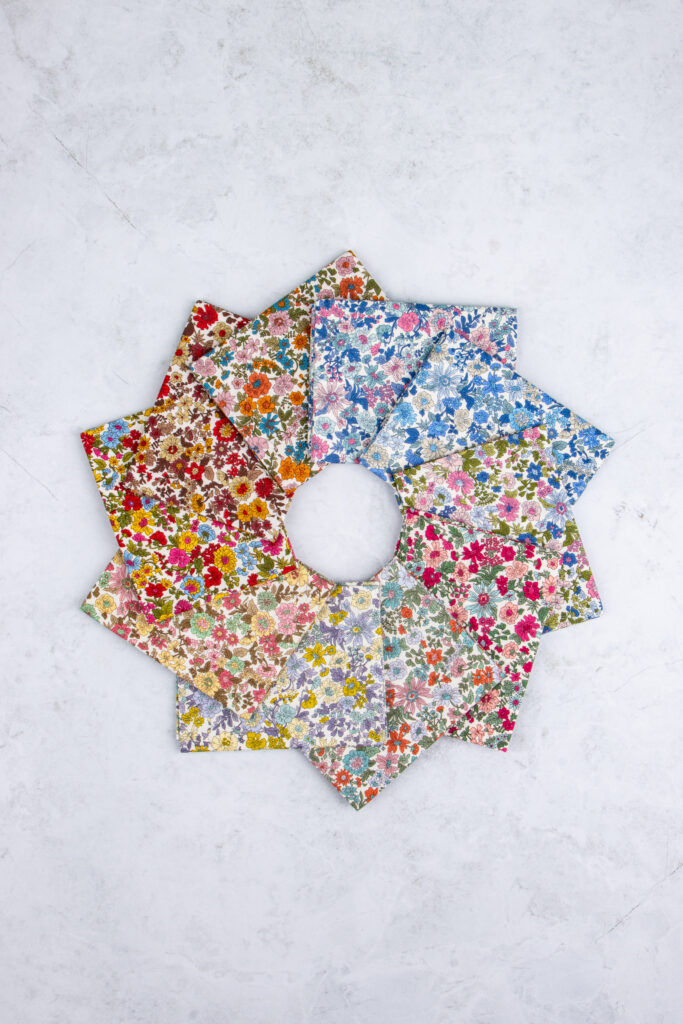 Step into the regal splendor of Palace Gardens, a crafting collection by Liberty inspired by the grandeur of royal homes and their exquisite, formal gardens. Uncover a harmonious blend of balance and symmetry achieved through the stately ground’s geometric shrubbery and cultivated flora. From climbing roses and delicate primroses, uncover the timeless sophistication and romance of a flowering English garden. Infused with a touch of royal whimsy, these patterns seamlessly combine enchanting florals with architectural precision, evoking the grandeur of historic estates and their enchanting landscapes.