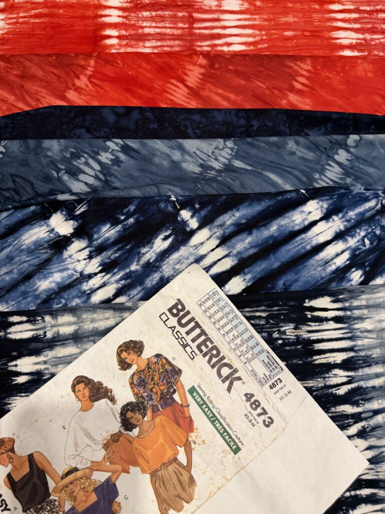 Three years ago, I attended a community Boro Boro sewing event here on the island. That’s where I learned the basics—how to let imperfection guide the hand—and where I acquired the now-discontinued Butterick Pattern #4873, a simple, utilitarian shape that leaves room for the cloth to speak.