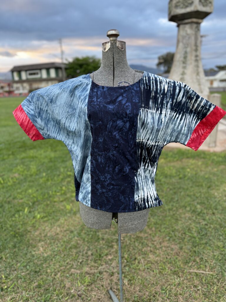 Granted, I began with five one-yard cuts of brand-new fabric from the Shibori batik line. But here on Kauai—where Japanese heritage runs as deep as the sugar plantations that once lined the coast—it only made sense that those fabrics would become a Boro Boro–style shirt.