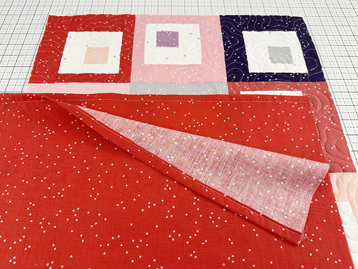 Note – if you add dense quilting, your top may shrink a bit in size. Just trim it to the largest square that you can. You can trim the width of envelope backing fabric a bit in the next step if needed in order to match your actual top size.