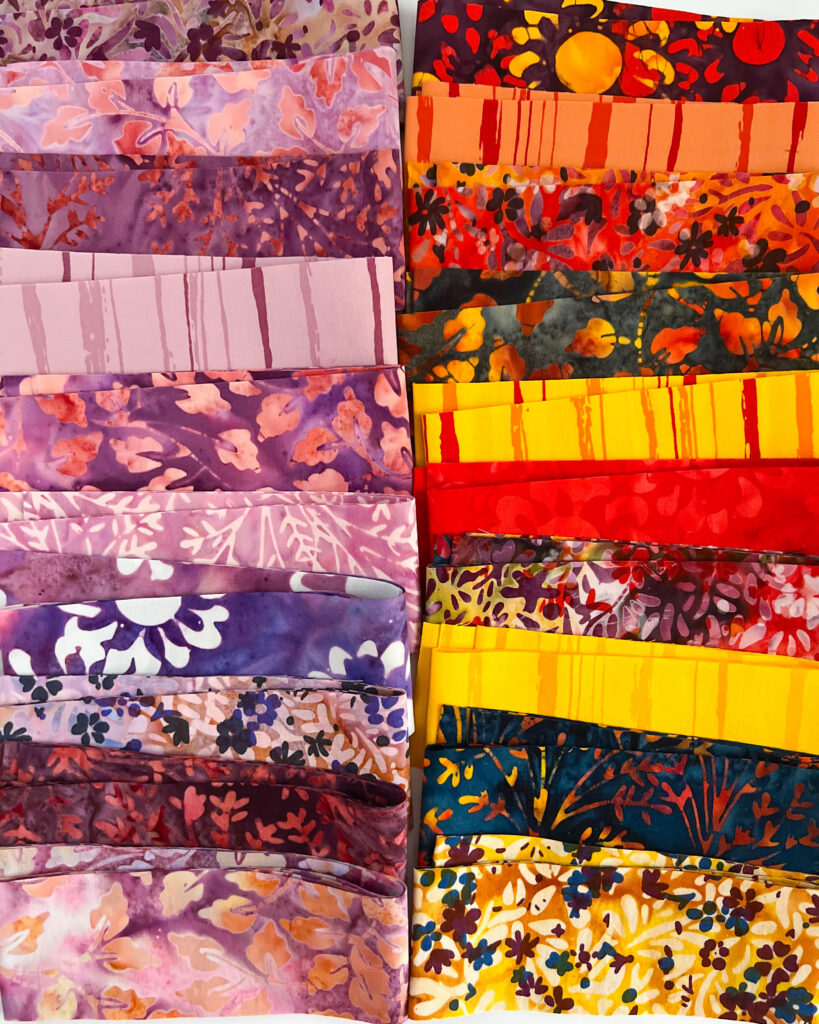 The Porcelains and Wildflowers Expressions Batiks are two separate collections that just happen to play beautifully together. Porcelains is a lovely low-volume mix of tonals: subtle, soft, and versatile. Wildflowers, on the other hand, feels like two collections in one: a cool, mauvy side and a warm, golden side. When combined, they strike a perfect balance of calm and vibrance, giving you endless ways to mix and match.