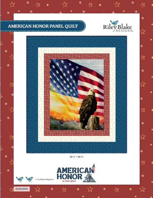 Celebrate our veterans with the new American Honor Panel Quilt made with American Honor fabrics by Vicki Gifford! The link to the FREE pattern by The RBD Designers is available below.