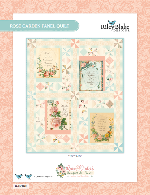 Bring home the perfect touch of French charm with the Rose Garden Panel Quilt! Delicate and romantic, this quilt features the gorgeous florals, stripes, lace, and dot prints of the Rose & Violet’s Bouquet des Fleurs collection by Miss Rose & Sister Violet.