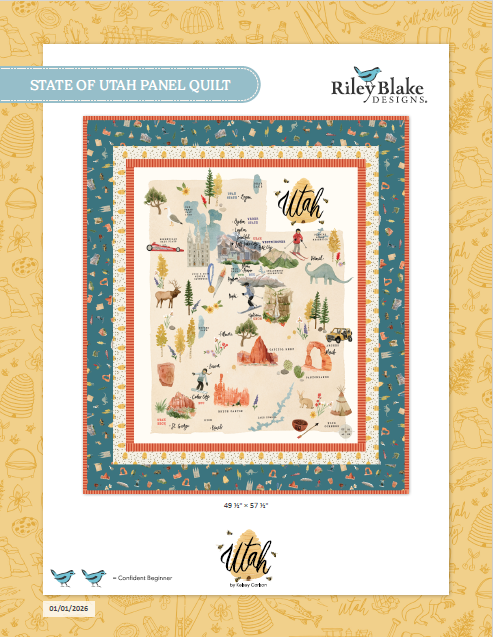 This standout panel from Kelsey Carlson’s Utah collection highlights all of the must-see destinations and activities in the state! Perfect for nature lovers, this quilt and the coordinating fabrics capture the spirit of skiing, hiking, and exploring the beauty of Utah.