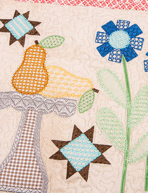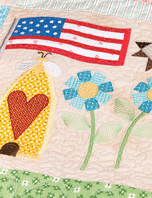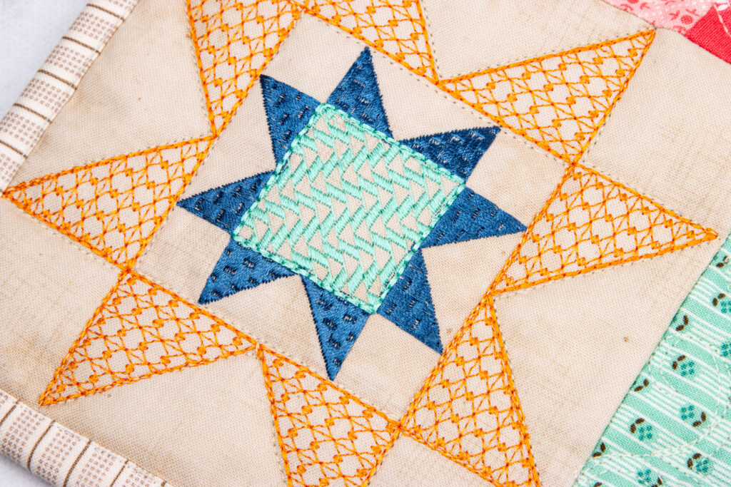 Lori Holt’s Prim Quilt, adapted for machine embroidery, is a wonderful example of how texture and patterned stitching can elevate a design. Thoughtful use of these techniques helps showcase the artistry of the original work while ensuring beautiful, reliable stitch results.