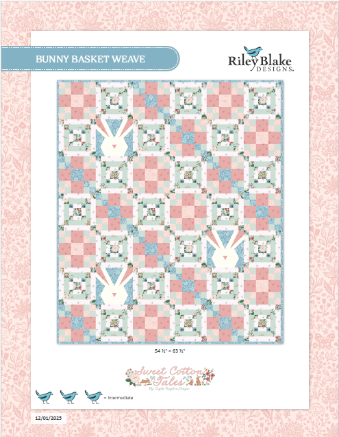 Featuring beautiful florals, trendy bows, trailing blossoms, and darling hopping bunnies, this quilt made with Sweet Cotton Tales by Cayla Naylor evokes the magic of fragrant meadows! You can download the FREE Bunny Basket Weave Quilt Pattern by The RBD Designers below!