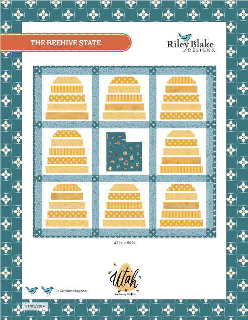 Capture the beauty of The Beehive State with this quilt! Featuring a rich palette of cream, blue, yellow, teal, orange, and gold, this quilt is made with the Utah collection by Kelsey Carlson. Download the pattern below!