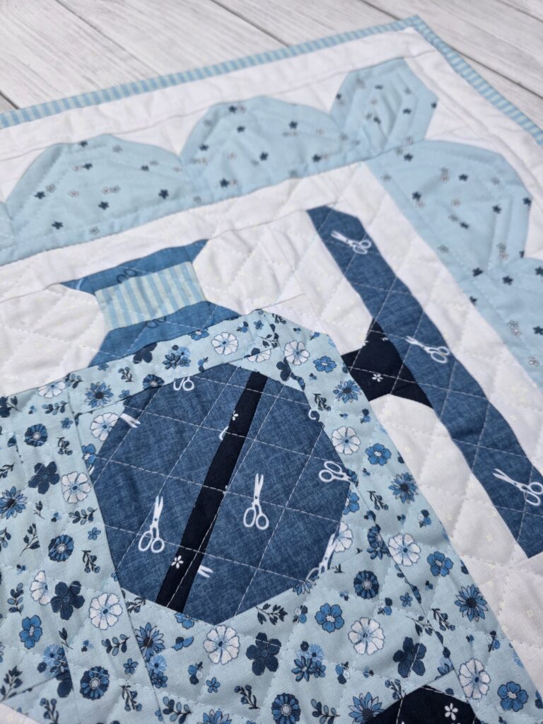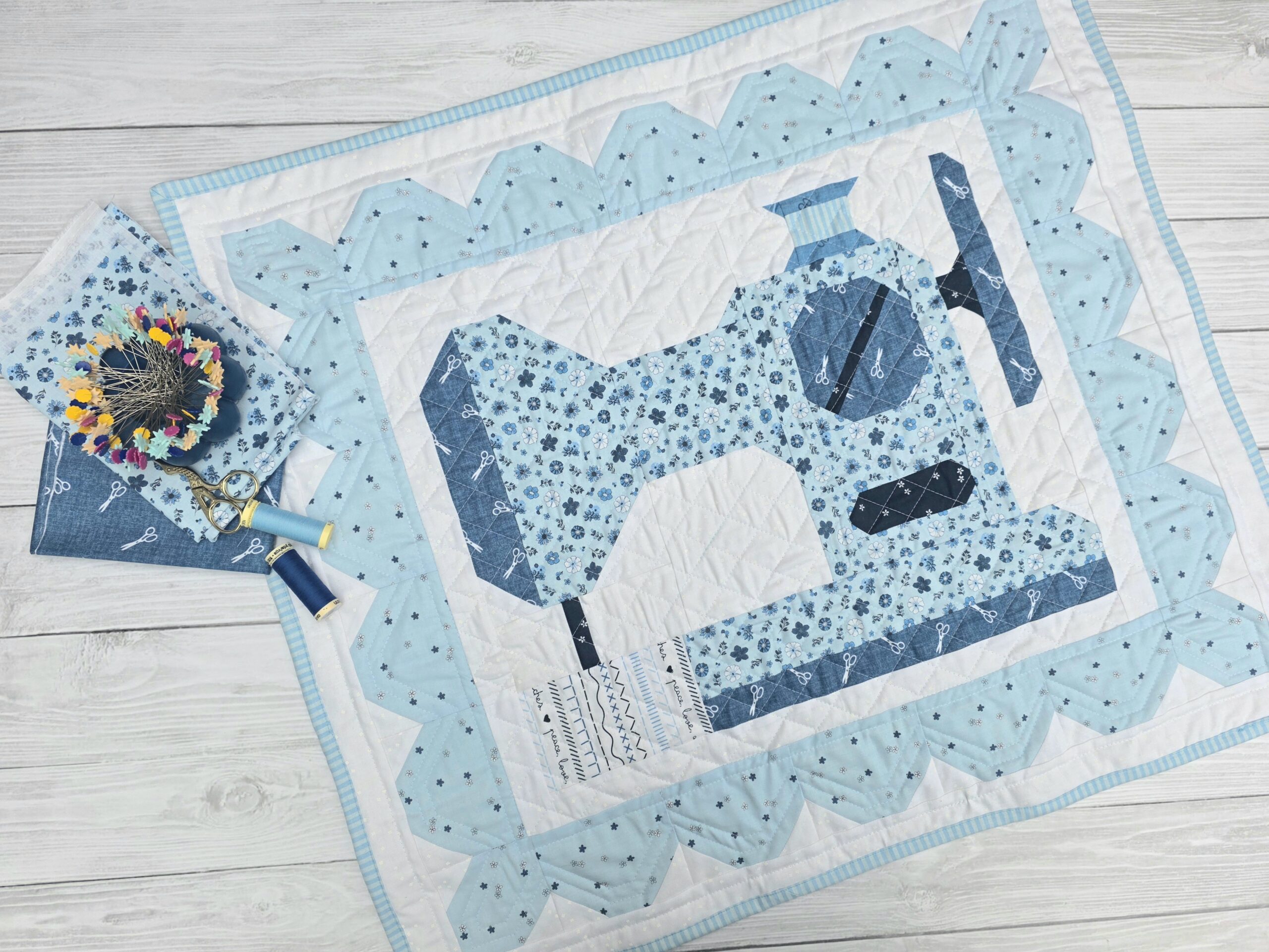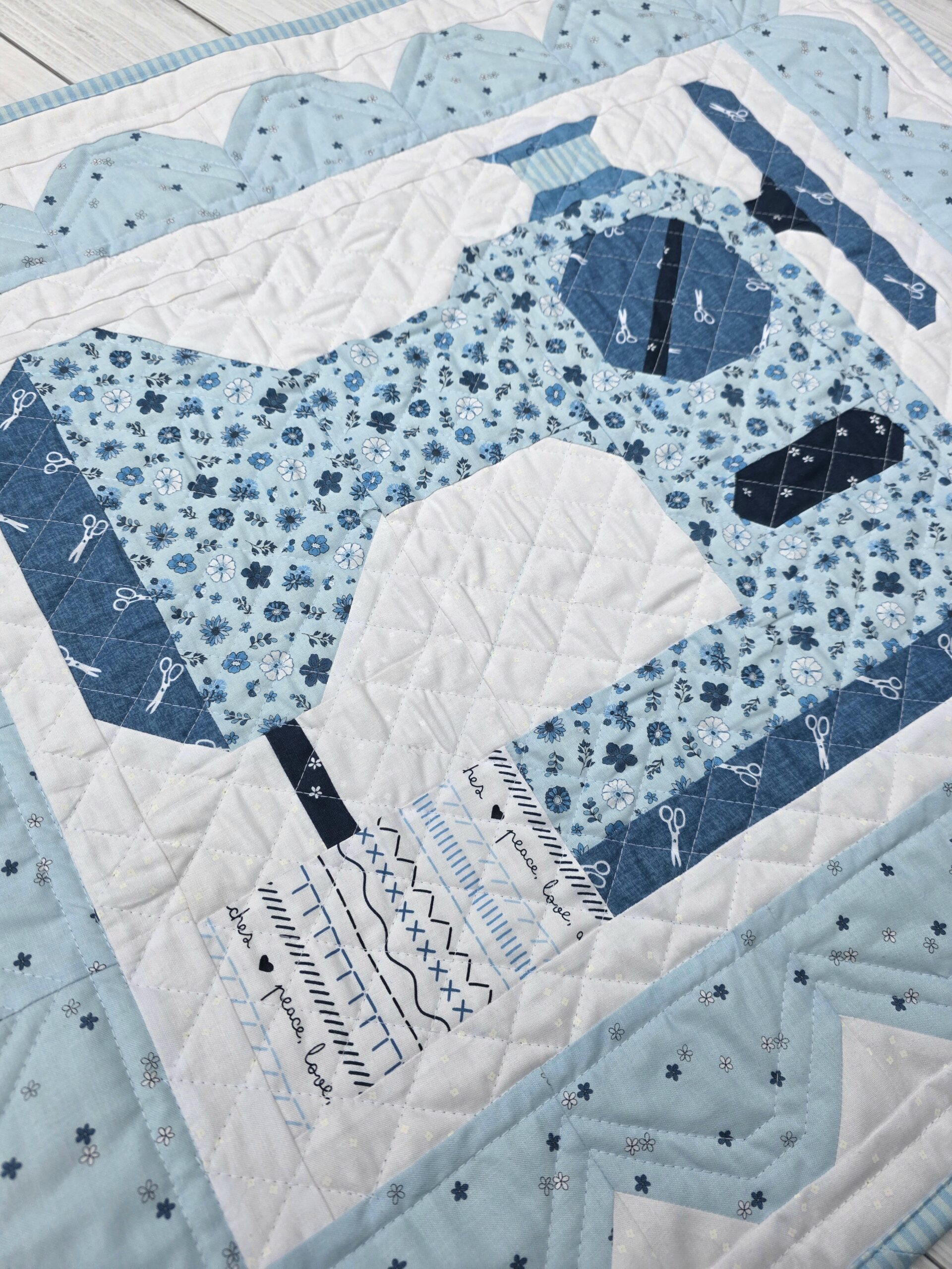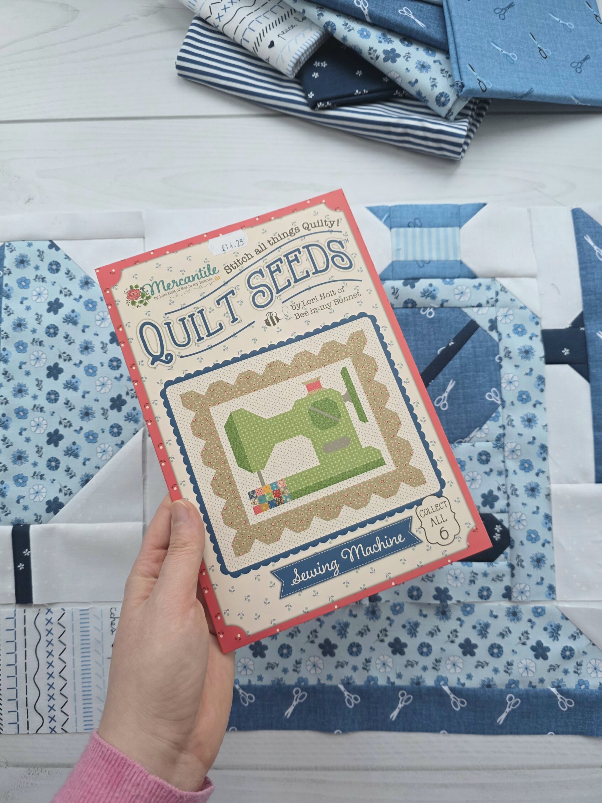 I have had the sewing machine quilt seed pattern by Lori Holt in my stash for a while and I decided that this was the perfect project to use the pattern. The sewing notions included in the fabric really added an extra dimension.