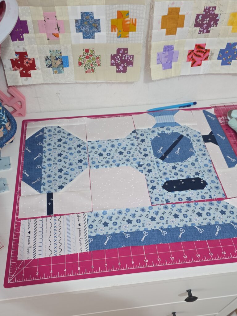 The pattern calls for you to make a mini piece of patchwork that is under the needle but I thought one of the stitches print worked great for this section. What a great feature print!