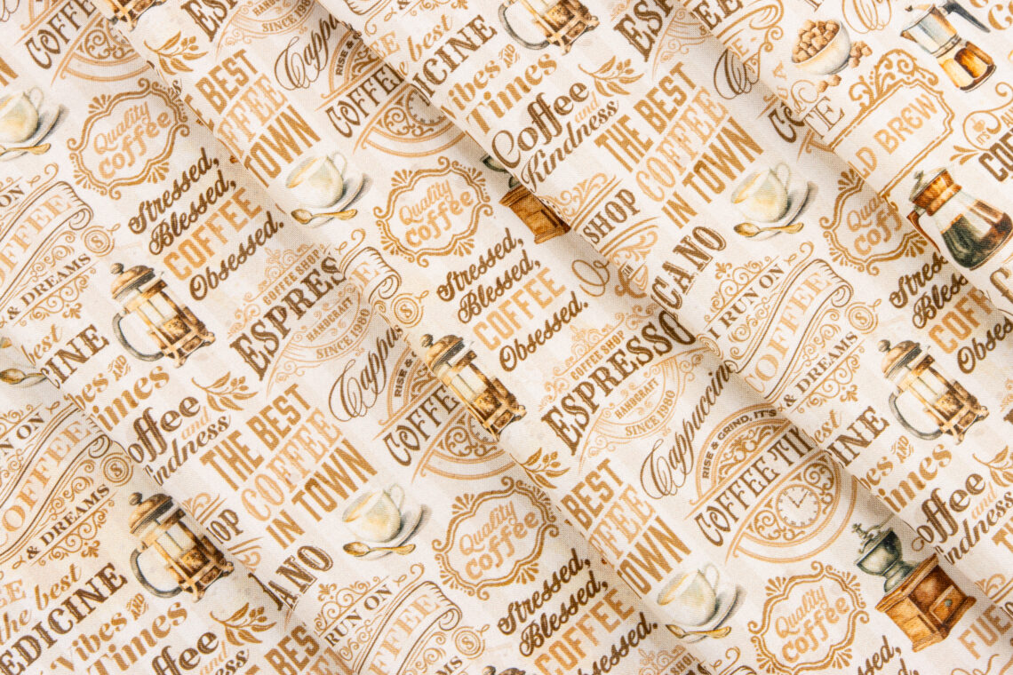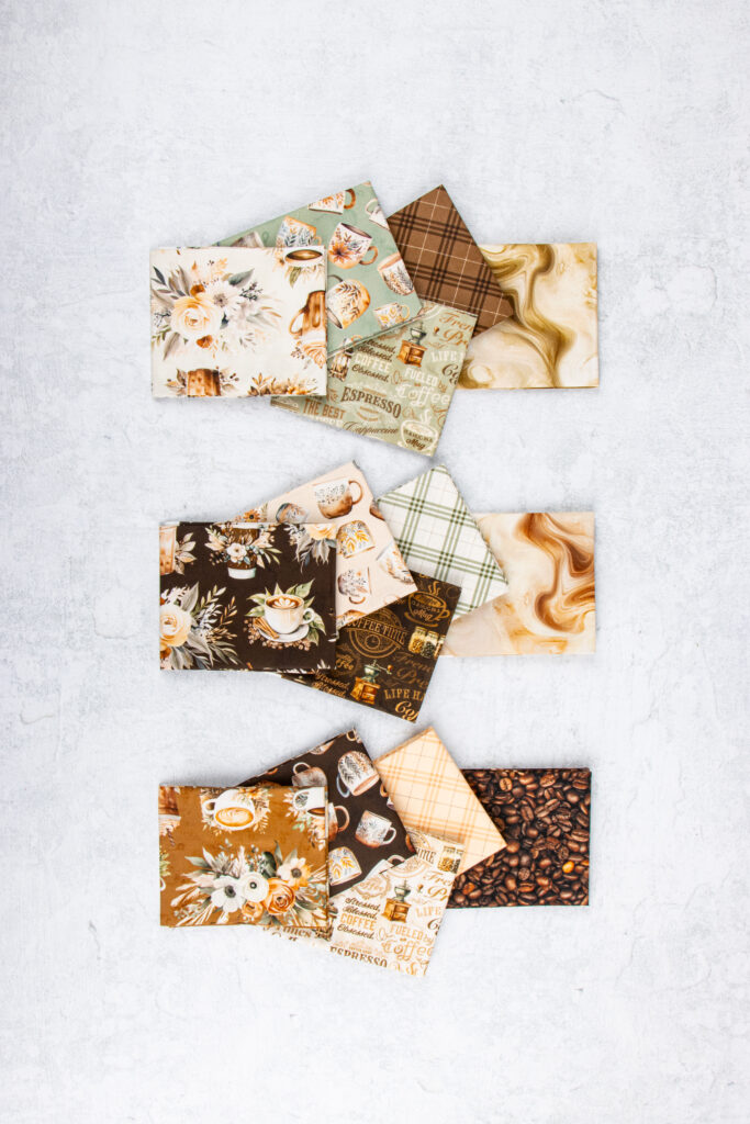These bold new Coffee Time fabrics and patterns deliver to shops this February!