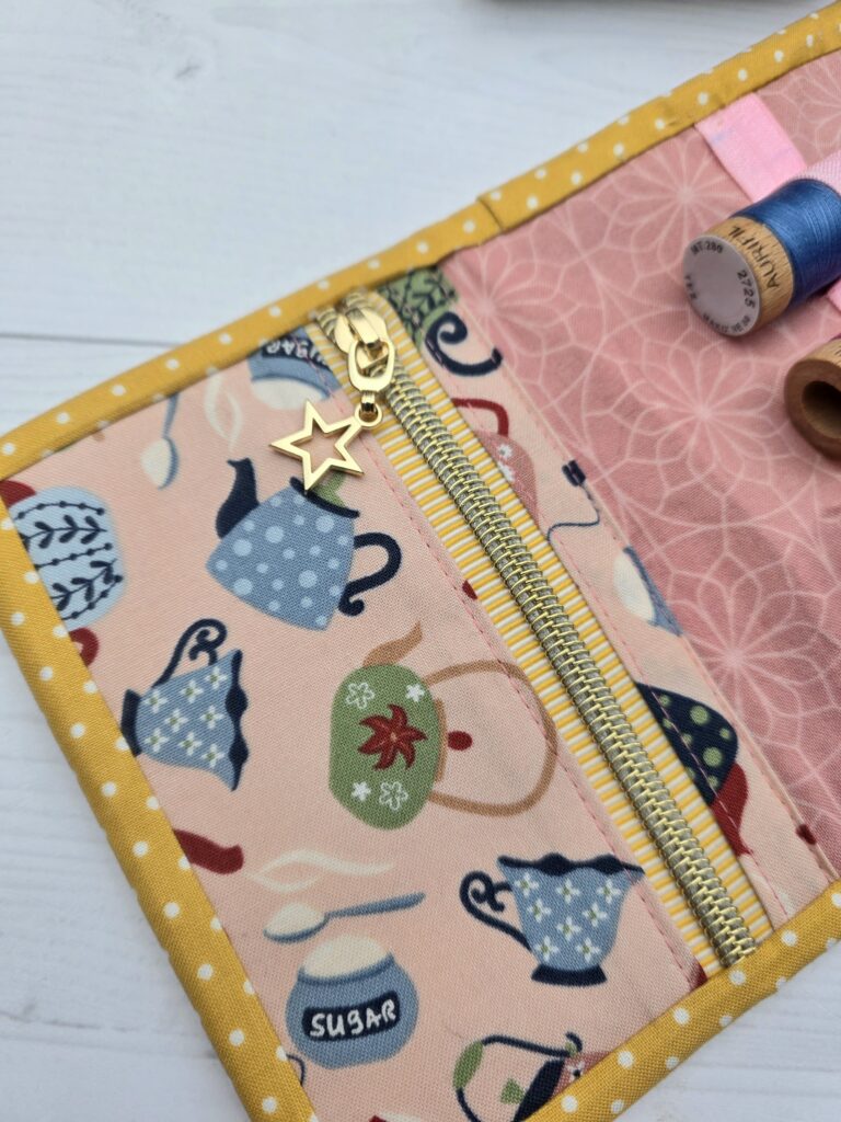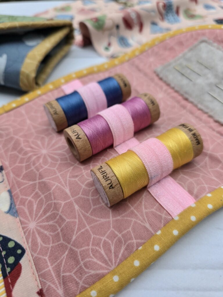 I have made the Pixie Sewing Case by Rosie Taylor Crafts. The pattern includes two different sizes and I made them both – I just couldn’t decide on one size. The only modification I made was using fold over elastic rather than the called for quarter inch elastic. Fold over elastic is more readily available in different colours. But I would not recommend using a water soluable marker on fold over elastic as it was hard to remove the marks!